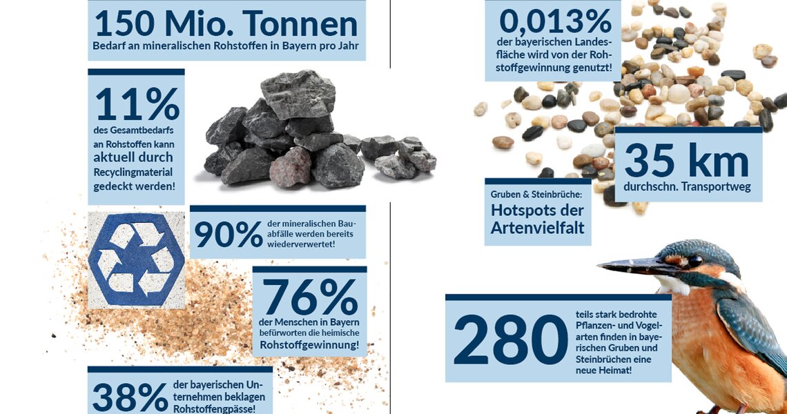 Bau- und Rohstoffe werden in riesigen Mengen gebraucht. Die Förderung vor Ort ist wirtschaftlich und ökologisch unerlässlich, aber angesichts der großen Nutzungskonkurrenz bei Flächen und vielen Vorbehalten in der Bevölkerung nicht einfach. Es braucht und gibt Wege und Ansätze, wie Rohstoffgewinnung mit CO2-Einsparung, Artenschutz sowie Mehrfachnutzung von Flächen und Bodenmaterial gelingen kann.