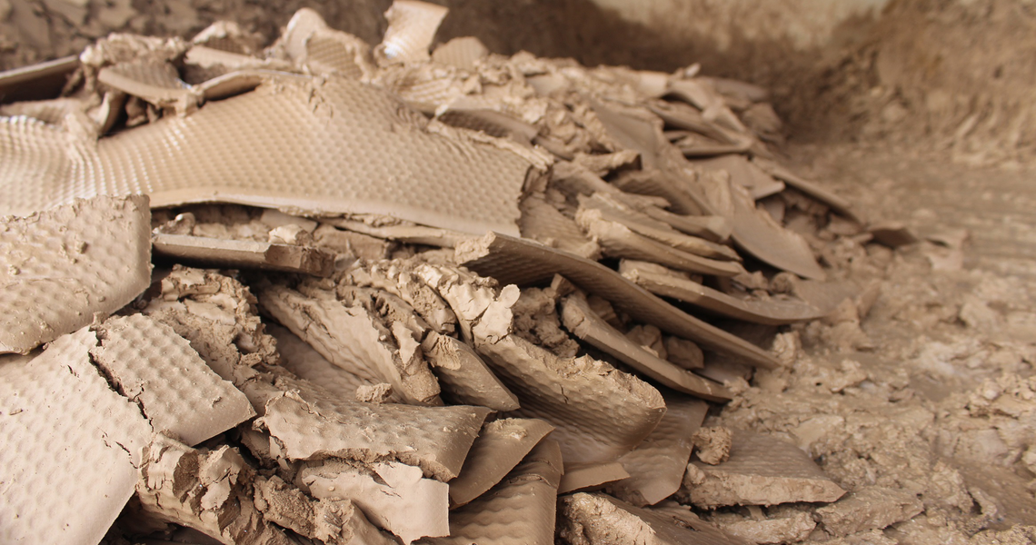 Schlammkuchen nach der Entwässerung