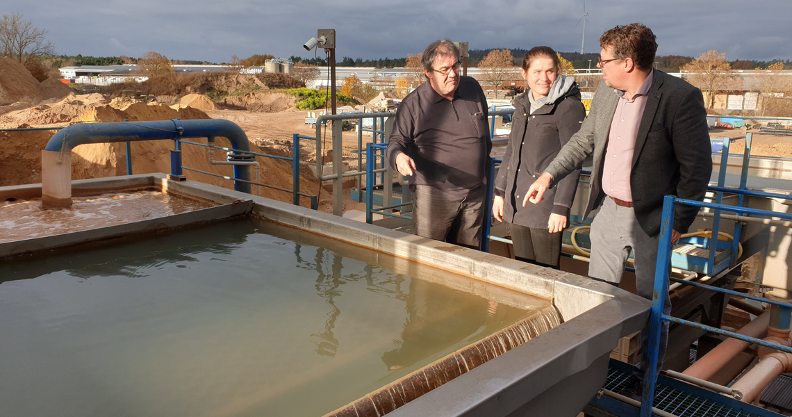 Frisch gewonnener Sand muss vor der Weiterverarbeitung und Verwendung gründlich gesäubert werden und genau dafür braucht es eine Art Waschanlage für Sand. Die Firma Georg Müller und Töchter GmbH und Co. KG aus Wilburgstetten hat ein Verfahren entwickelt, bei dem das Wasser, mit dem der Sand gewaschen wird, zurückgewonnen werden kann.